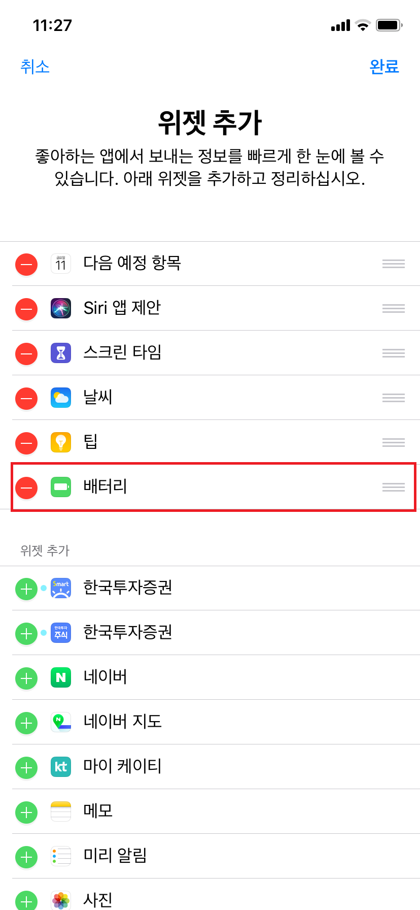 그리고 [배터리] 위젯을 추가하시면 됩니다 ㅎㅎ
